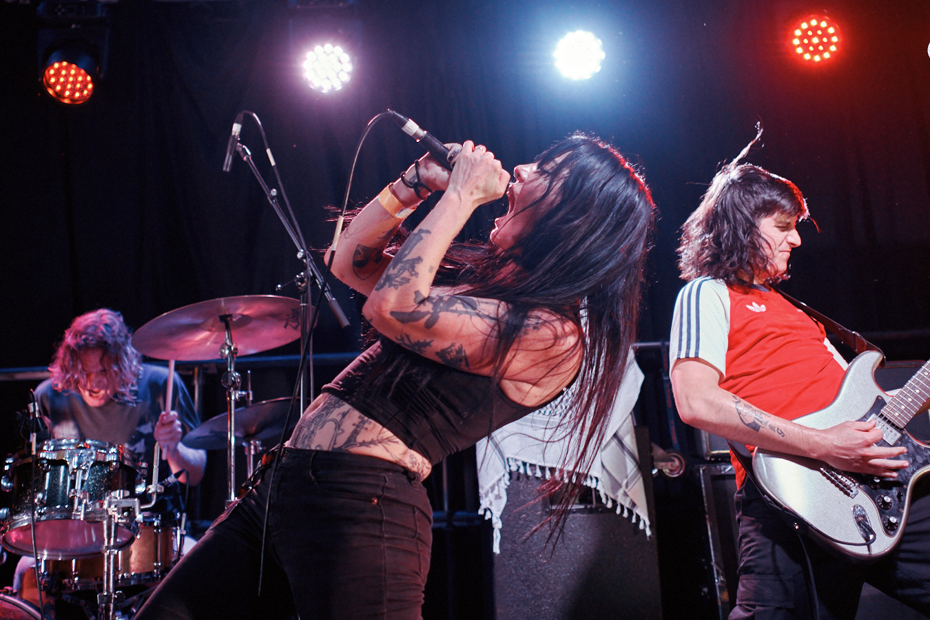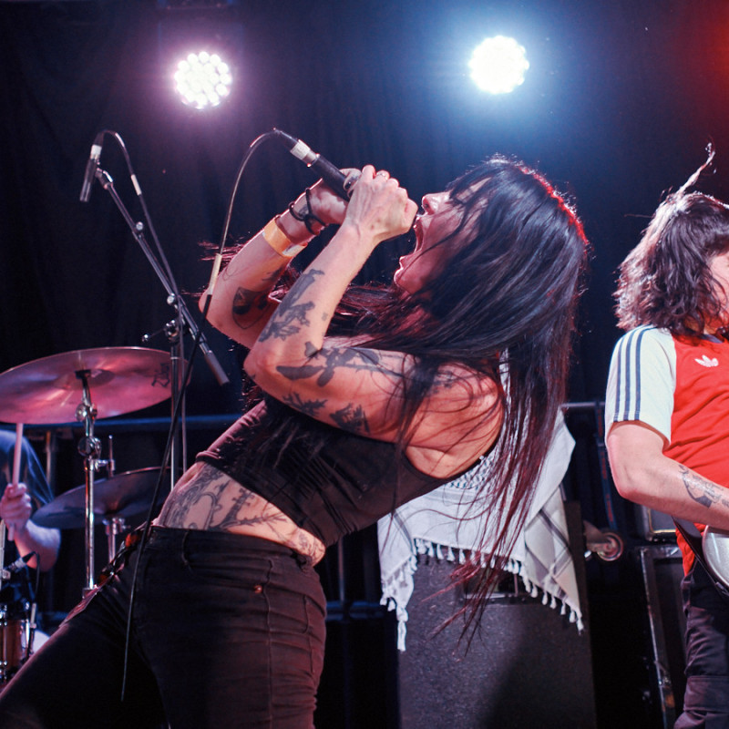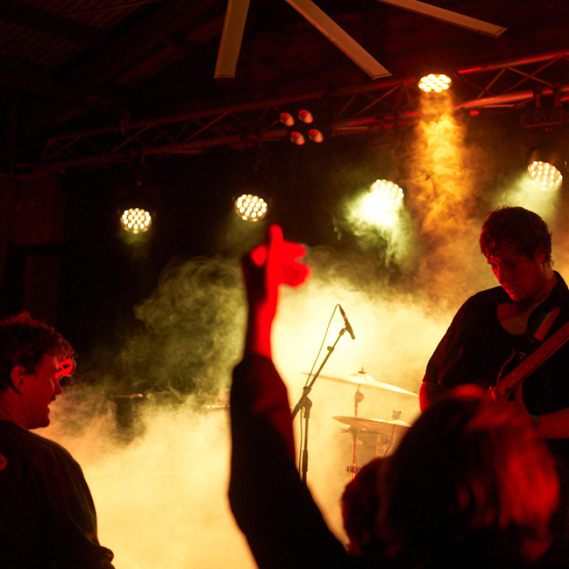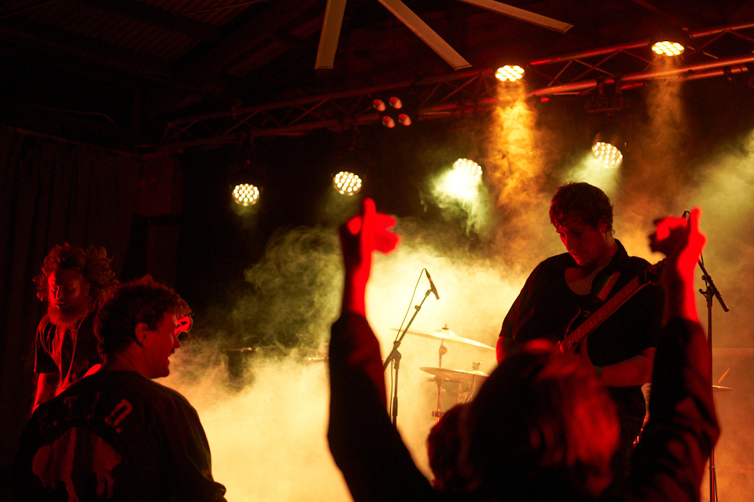 My main squeeze is a Sony A7RIII, but I might use my old A7II for shows that I think might get a bit more hectic. For lenses, I use primes as they're what I've used before getting into gig photography, so that's what I've got! I mostly like to use a Voigtlander APO 50mm f/2, but that can be a bit tight for most venues, so I also bring along my Sony 28mm f/2. I'm starting to try and experiment with flash as well, so I bring my godox flash trigger and speedlite.