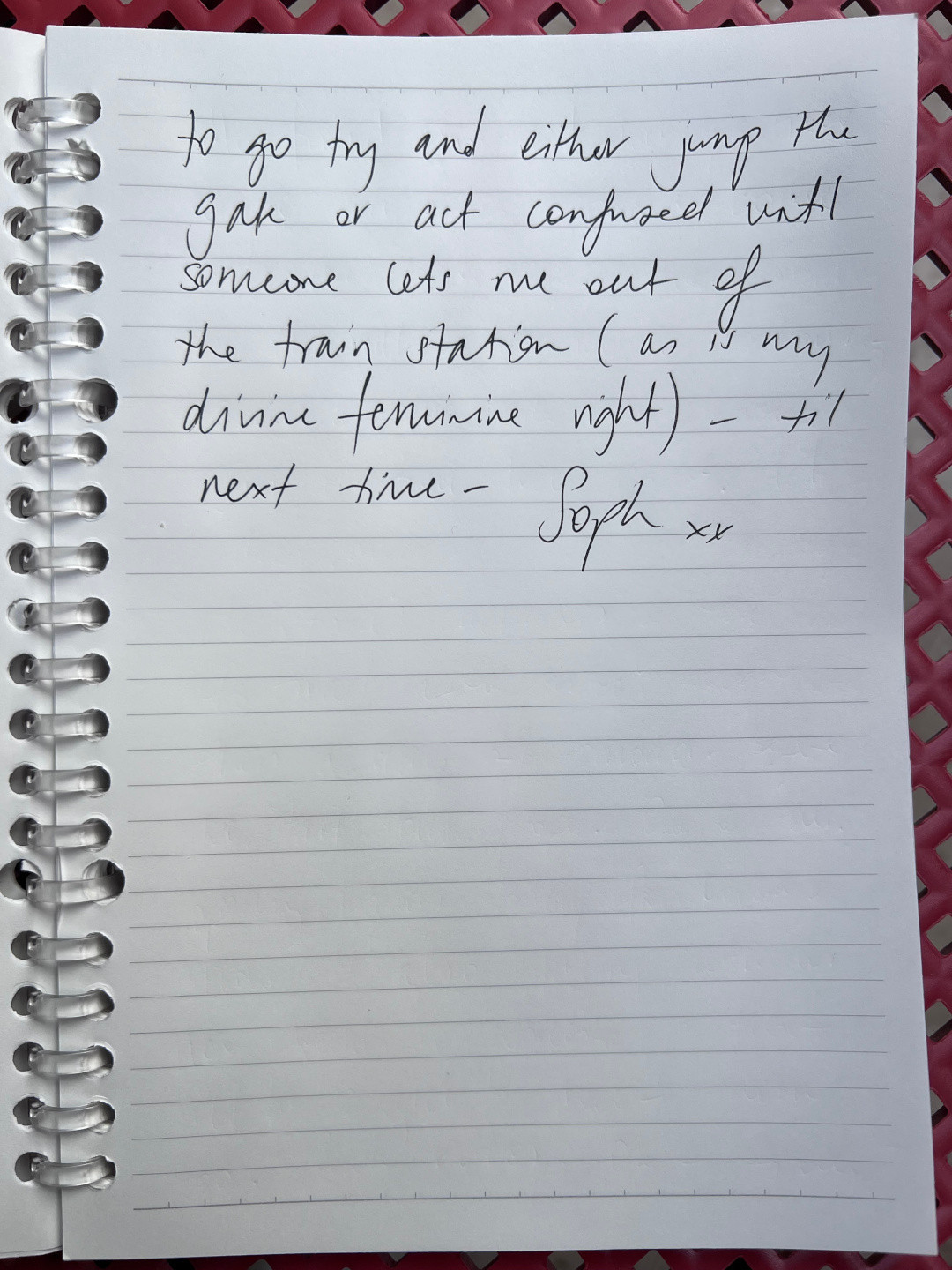 OK - time to try and either jump the gap or act confused until someone lets me out of the train station (as is my divine feminine right).