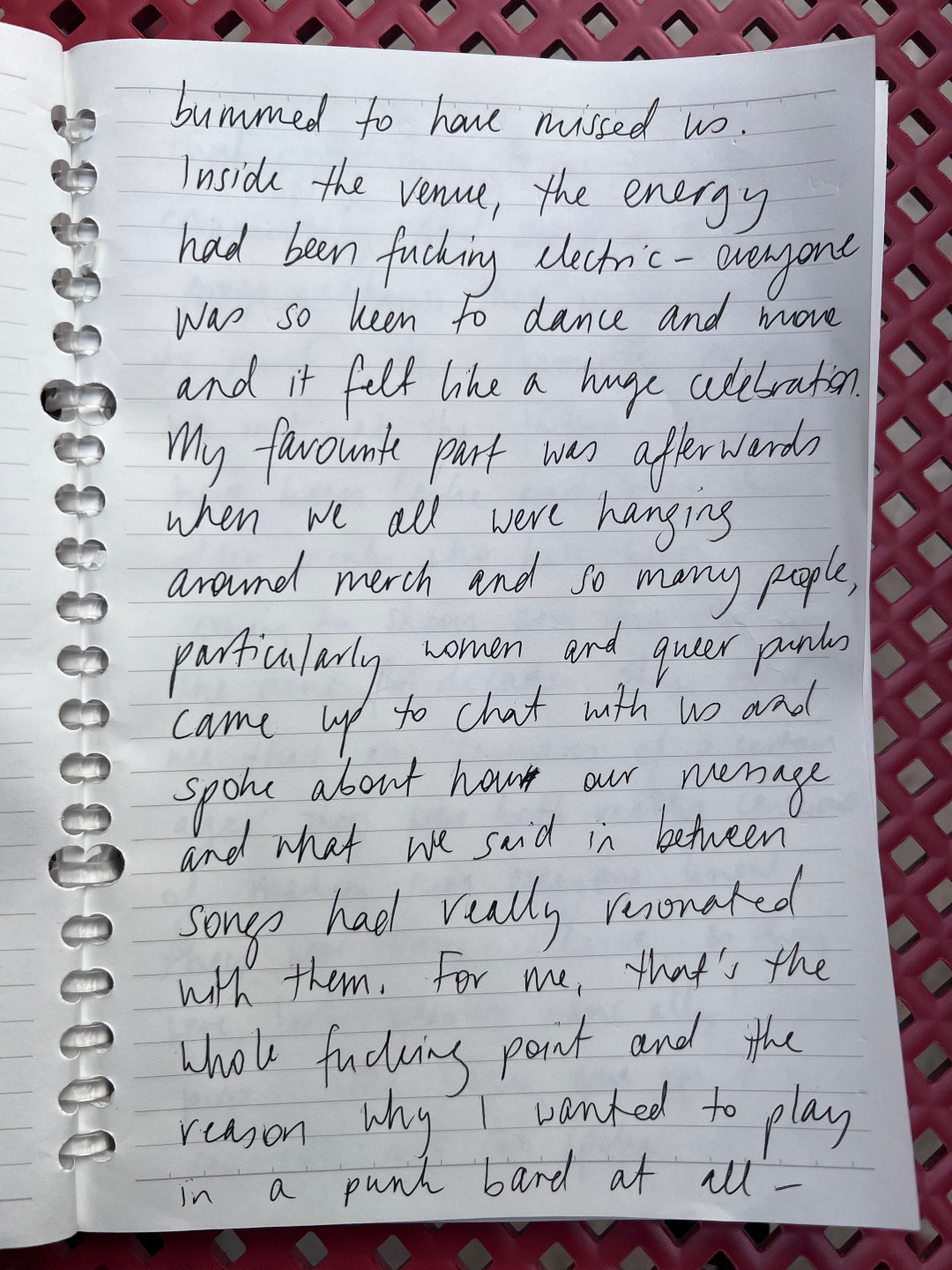 My favourite part was afterwards when we all were hanging around merch and so many people, particularly woman and queer punks, came up to chat with us and spoke about how our message and what we said in between songs had really resonated with them. For me, that's the whole fucking point and the reason why I wanted play in a punk band at all - that opportunity to create community and share in the group catharsis that is so special to punk.