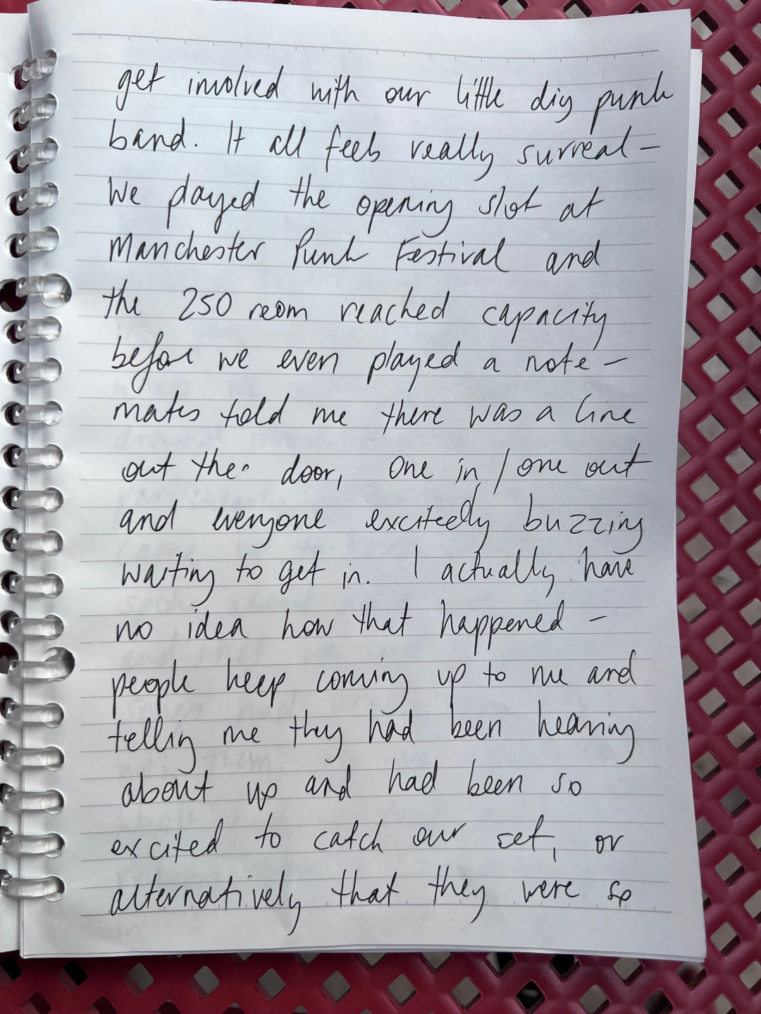 We played the opening slot at Manchester Punk Festival and the 250 room reached capacity before we played a single note - mates told me there was a line out the door, one in/one out, and everyone excitedly buzzing waiting to get in. I actually have no idea how that happened; people kept coming up to me and telling me they had been hearing about us and had been so excited to catch our set, or alternatively that they were so bummed to have missed us.
